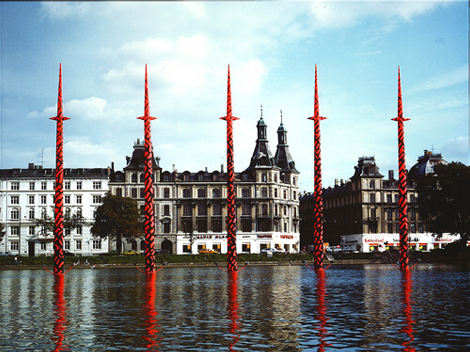 * In Sortedams Lake a string of spotlights illuminates B.v.H.H.S’s five