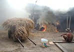 Symbolic bamboo deathbed, facing west, toward Mecca, for an Indonesian rice farmer who slowly falls asleep with the 3 most important tools that were necessary for him and his family's survival through a long life.- Symbolic clay jar, life-tank slowly emptied and life is running out. Life is time and time is life.